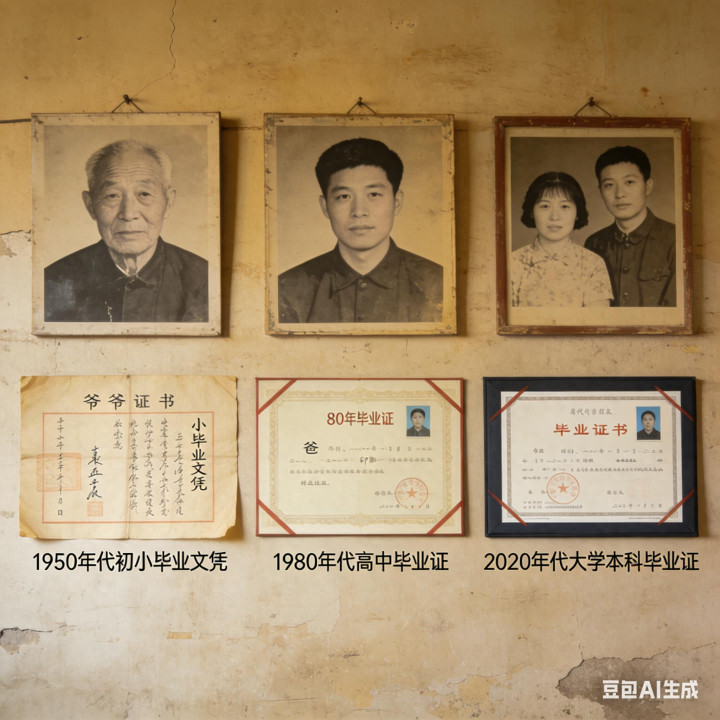 历史的尘埃,落在每个家庭头上,都是一段命运。三代人的文凭,刻下的不仅是个体的奋斗,更是一个国家在狂奔中调整呼吸的沉重印记。